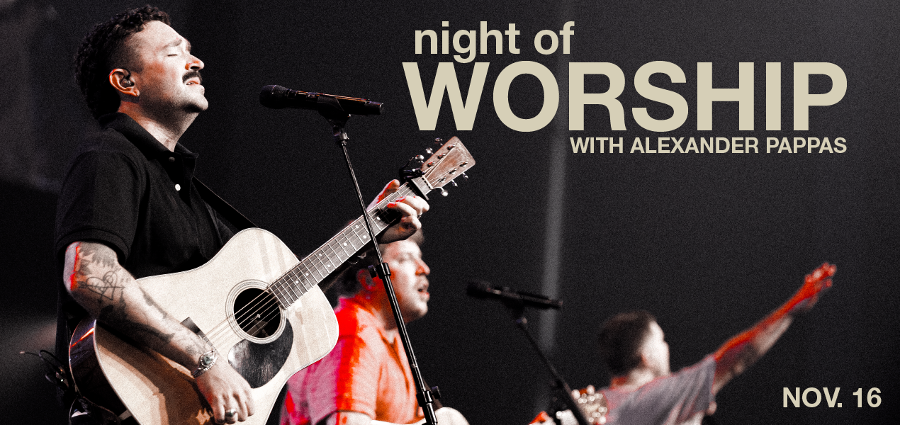 Join us in our main auditorium from 6:00PM to 8:00PM for a Night of Worship with our friend Alexander Pappas, as well as message moments in between. There will be no childcare provided.